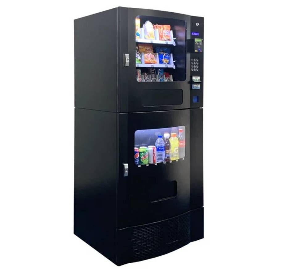 Brand new, never used vending machine. This combo vending machine is capable of holding 253 items total with 23 numbered selections to choose from. It can hold up to 85 beverages in the refrigerated section (45 cans and 40 bottles), 112 candy-sized items, and 56 snack-sized items in the larger rows. Stock this combo vending machine with your favorite drinks, snacks, and candies and enjoy guaranteed daily sales! This unit requires a 115V electrical connection for operation.